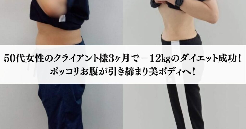 50代の女性、3ヶ月半で-12㎏減!ポッコリお腹が引き締まり美ボディへ!